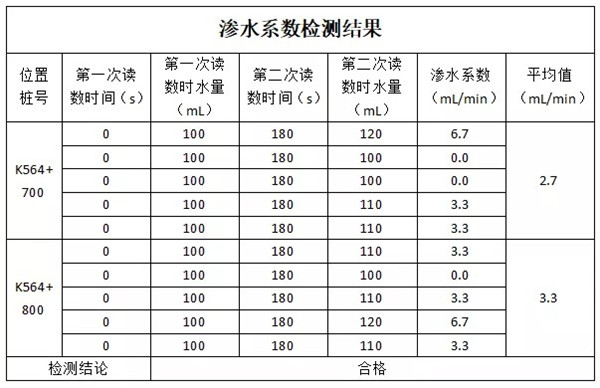相關(guān)檢測(cè)數(shù)據(jù)顯示,該就地?zé)嵩偕鸀r青路面的各項(xiàng)性能指標(biāo)均滿(mǎn)足規(guī)范要求,尤其對(duì)上面層較為關(guān)鍵的滲水系數(shù)和動(dòng)穩(wěn)定度兩項(xiàng)指標(biāo),均高于一般工程項(xiàng)目。試件空隙率為 2.5%,馬歇爾穩(wěn)定度高達(dá) 14.5 KN,流值僅 3.4(0.1 mm),說(shuō)明該就地?zé)嵩偕鸀r青路面具有較強(qiáng)的抗?jié)B水能力和抗車(chē)轍能力。